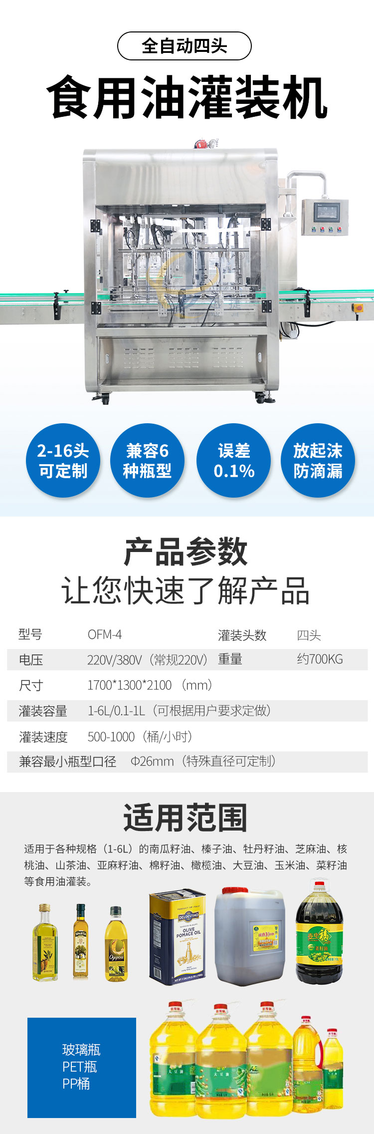 適用於各(gè)種規格(1-6L)的南(nán)瓜籽油、榛子油、牡丹(dān)籽油、芝麻(má)油、核桃油、山茶油、亞麻籽油、棉籽(zǐ)油、橄欖油、大豆油。