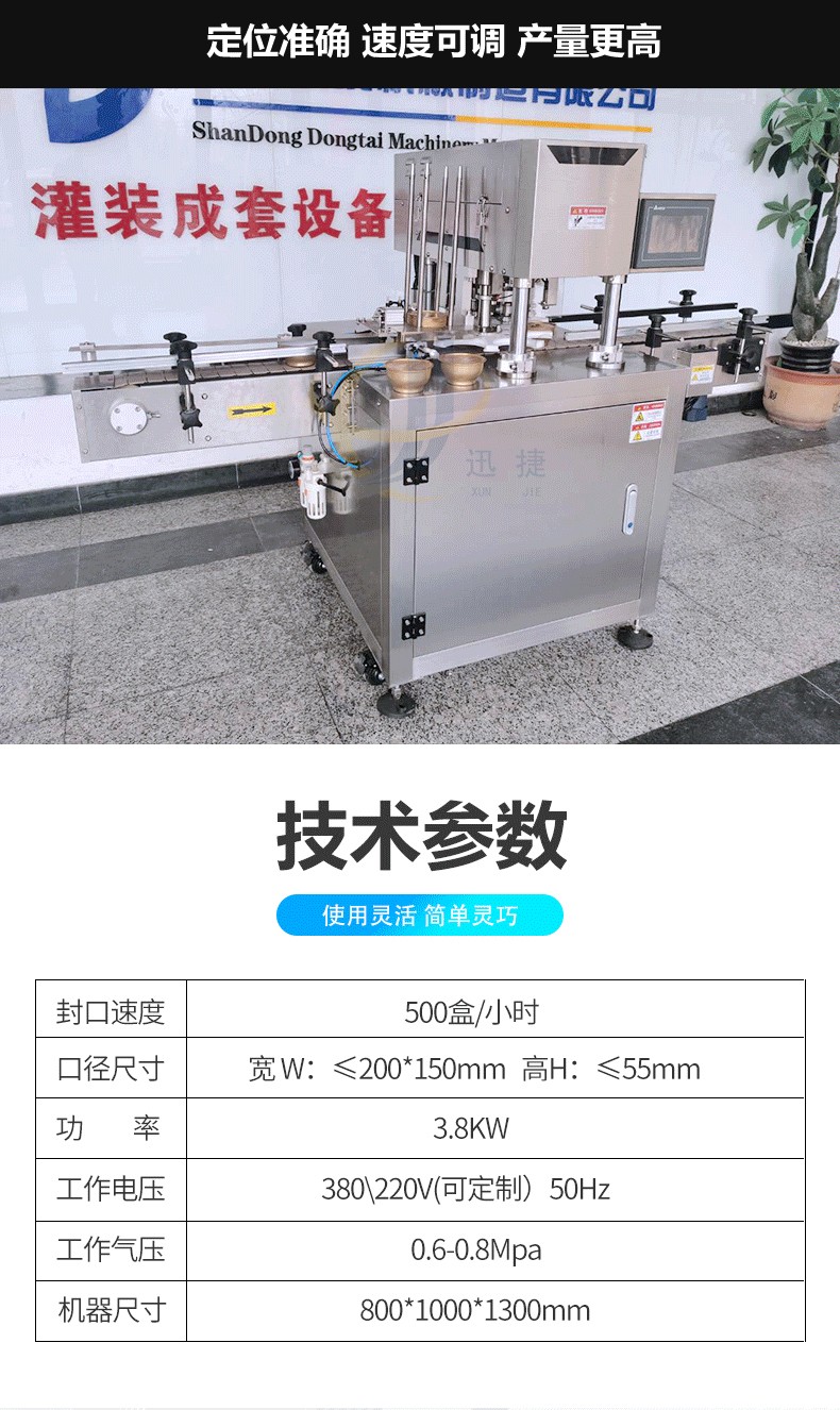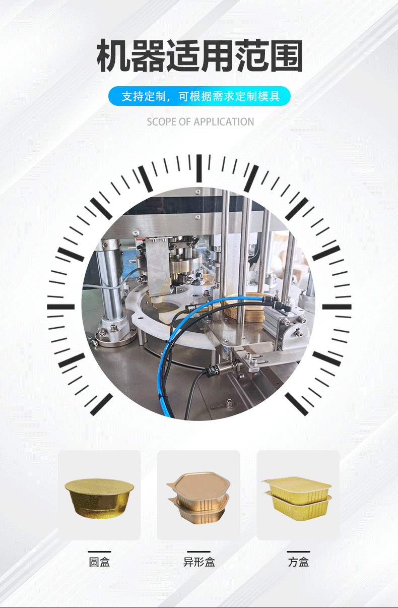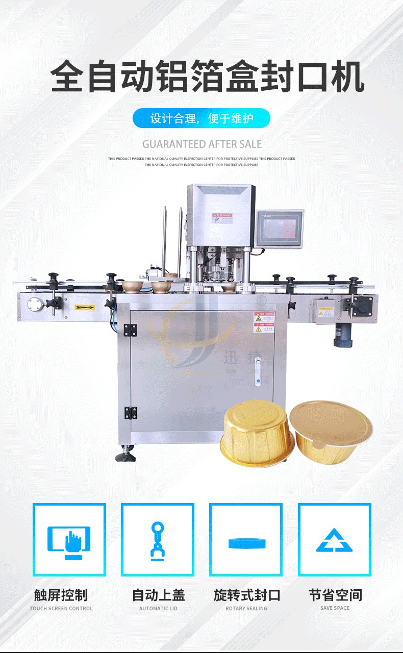 全自動(dòng)鋁箔盒(hé)封(fēng)口機用途:用於(yú)咖(kā)喱醬、調料(liào)品、火鍋(guō)料、果醬、辣椒醬、醬油醋、番茄醬等杯盒的自動灌(guàn)裝與封口。
