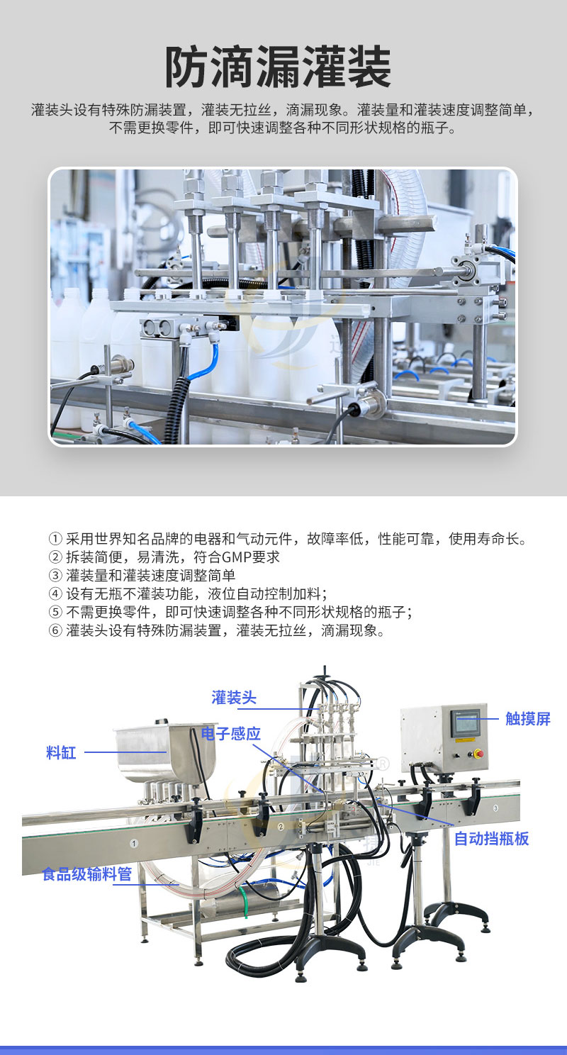 全自動膏液灌裝(zhuāng)機適用於食(shí)品、飲料、化妝品、日化和製藥行業。灌裝頭設有(yǒu)特殊防漏裝置,灌裝(zhuāng)無拉絲,滴漏現象。