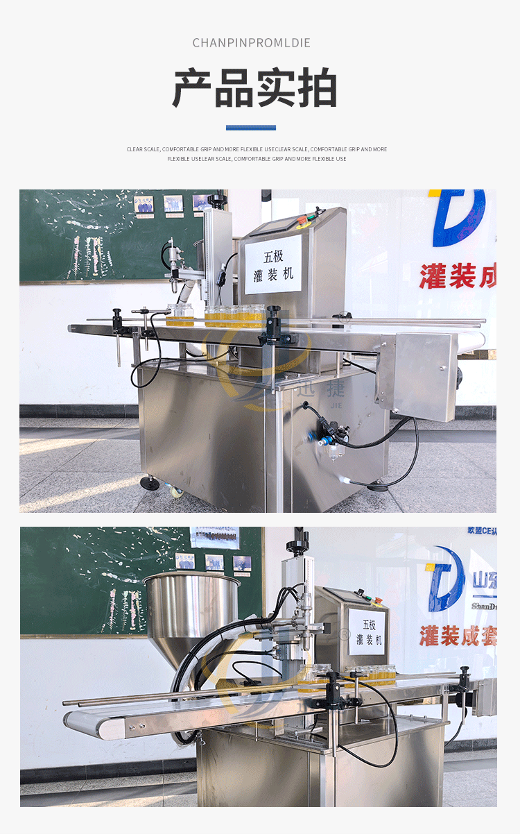 五極灌裝(zhuāng)機:極快-單(dān)頭2200瓶/時 極簡-操作簡單 極廣-啥(shá)啥都能灌 極穩-24小時(shí)不停(tíng)機(jī) 極準-200g誤差小於1g。它可以和真空(kōng)旋蓋機(jī)搭配(pèi)使用。