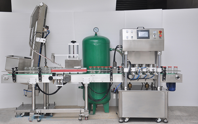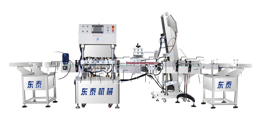旋蓋部分:機(jī)器采(cǎi)用自動下蓋方式,無需過多人工(gōng)參與,自動下蓋抽真(zhēn)空(kōng)旋(xuán)蓋,整機灌裝包裝流程一氣嗬成。