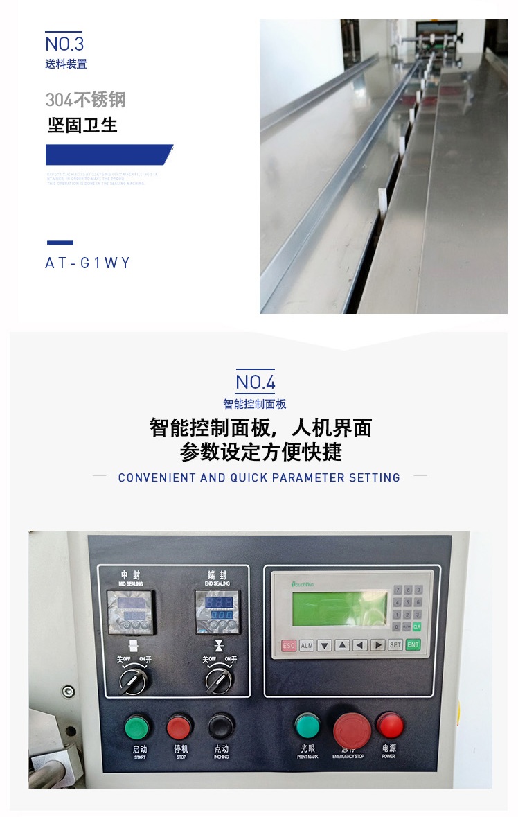 C、先進的微電(diàn)腦包裝控製器,優良的人機對話模式,使速(sù)度、袋長、切點位置檢測等都(dōu)可在界麵上直接(jiē)顯示。