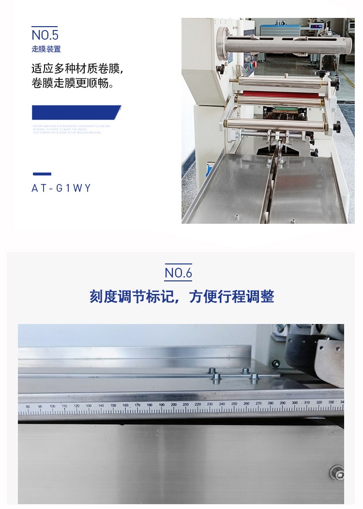 D、滑動式橫封機構,可上下任意調整(zhěng)橫封的中心高度。