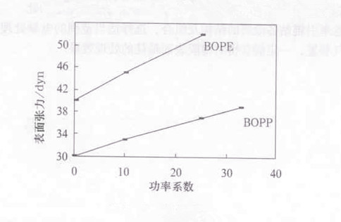 3.電暈處酗L功率的選擇。不同的(de)材(cái)料要(yào)達到相應的濕潤張力根據其速度、寬度不同,應選擇不同功率(lǜ)的處理機,功率係數如下圖所示。