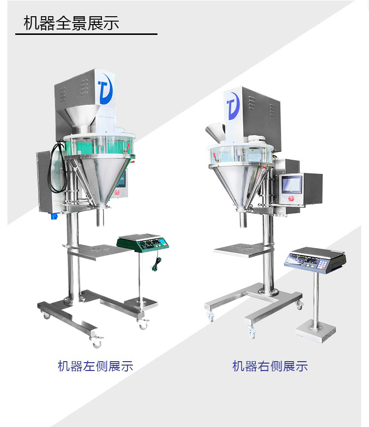 D、包裝範(fàn)圍寬:同一台定量包裝機在5-5000g內通過電子秤鍵盤調整及更換不同規格的下料螺旋連續可調